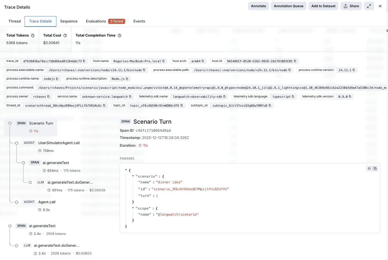 LangWatch enables agent simulations tailored to the system’s real behavior, including: