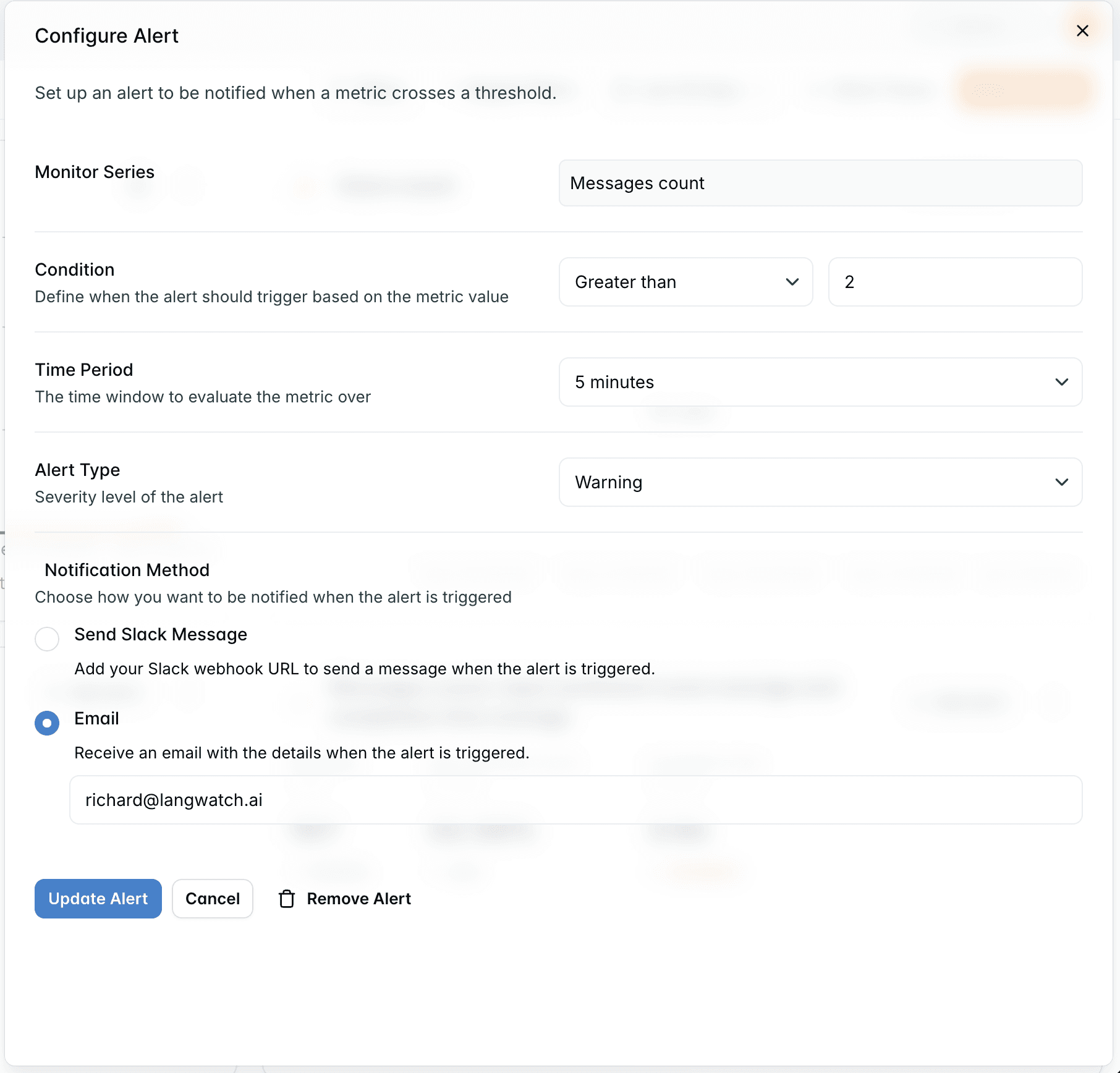 We’ve extended our alerting feature to now include alerts on custom graphs. This allows you to create alerts that trigger when specific thresholds are met, with notifications sent via your preferred channels such as Slack or email.